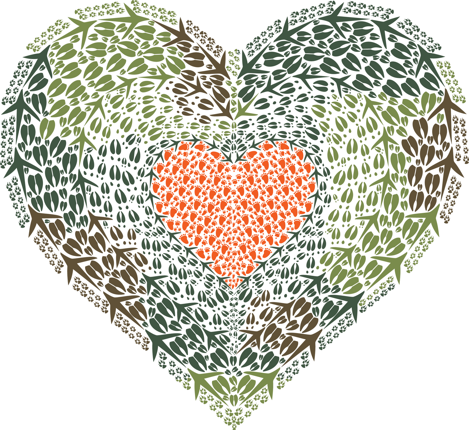 Our Heart Graphic Note Card showcases a striking heart design made from the detailed tracks of various wild animals. The heart's vibrant colors and the intricate animal tracks create a visually appealing and meaningful card, perfect for a variety of occasions.